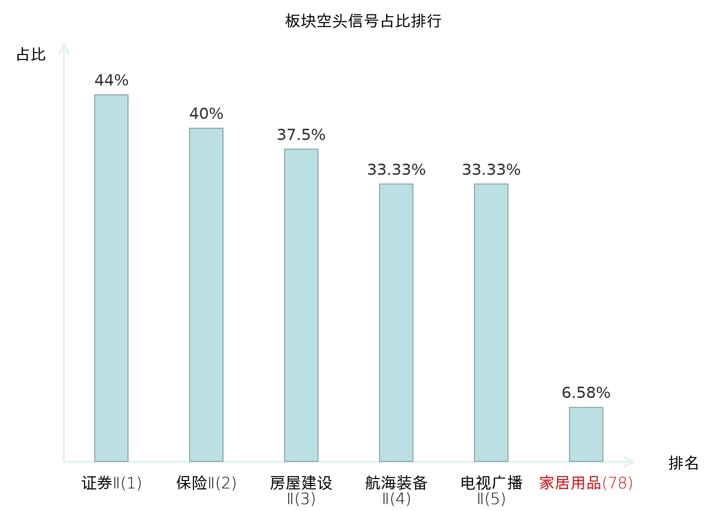 全市场所有行业板块中主力空头信号占比排名中,证券Ⅱ板块位居第一。证券Ⅱ板块名次提升最快,较昨日上升125位。