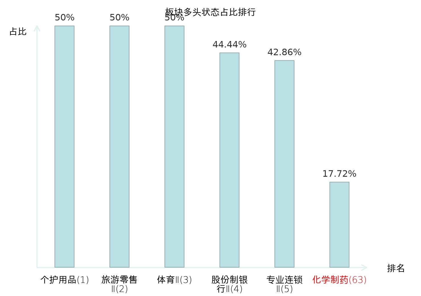 全市场所有行业板块中主力多头状态占比排名中,个护用品板块位居第一。非金属材料Ⅱ板块名次提升最快,较昨日上升37位。