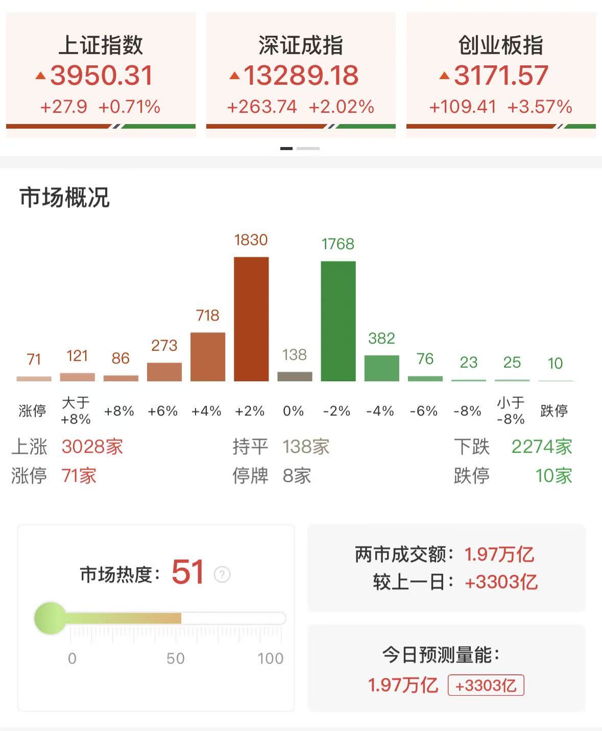 财联社10月24日讯,市场全天震荡反弹,沪指刷新年内新高,创业板指领涨。沪深两市成交额1.97万亿,较上一个交易日放量3303亿。从板块来看,算力硬件方向持续爆发,CPO概念股领涨,“光模块”三巨头齐发力,中际旭创大涨超12%创历史新高,汇绿生态5天3板。存储芯片概念股全天走强,香农芯创、普冉股份20cm涨停双双创新高。商业航天板块掀起涨停潮,航天科技等十余股涨停。下跌方面,煤炭股集体调整,安泰集团跌停。截至收盘,沪指涨0.71%,深成指涨2.02%,创业板指涨3.57%。