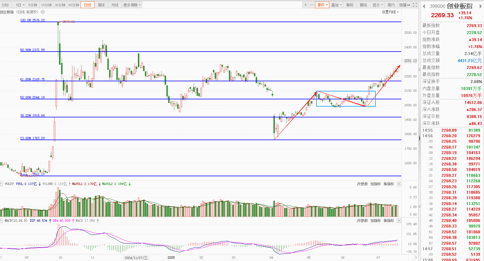 对了,昨天我还在说沪指歇歇脚,中小创该补涨了,结果今天创业板直接爆拉近2%!创业板50指数更猛,一口气突破黄金分割位,眼瞅着要冲去年国庆后的高点2576一线了。外资也来凑热闹,花旗刚把中韩股市评级调高,景顺的报告也说国际大机构对中国市场兴趣回来了。这行情啊,真是应了那句话--风来了,猪都能飞!