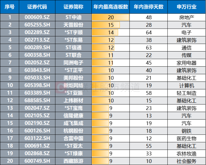 年内连板牛股扫描,三大板块占比较高
