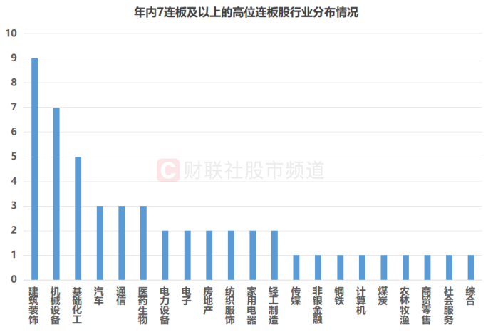 注:年内7连板及以上的高位连板股行业分布情况(截至11月18日收盘)