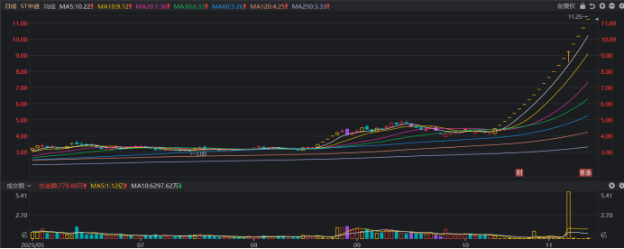 ST中迪涨势不歇,连板高度目前居首