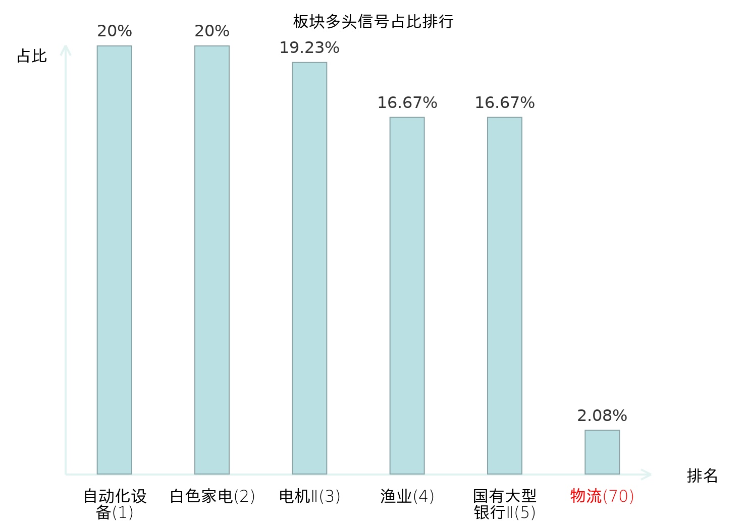 全市场所有行业板块中主力多头信号占比排名中,自动化设备板块位居第一。渔业板块名次提升最快,较昨日上升118位。