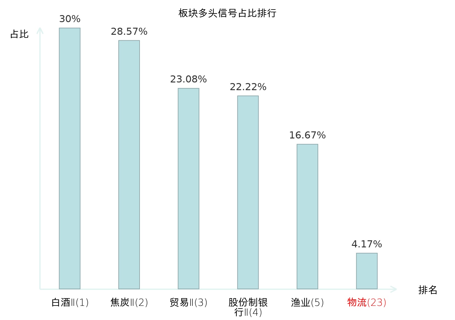 全市场所有行业板块中主力多头信号占比排名中,白酒Ⅱ板块位居第一。焦炭Ⅱ板块名次提升最快,较昨日上升119位。