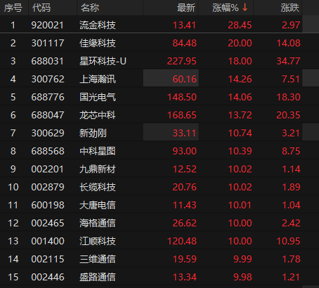 上证报中国证券网讯 1月14日早盘,商业航天概念股震荡反弹,截至10时40分,佳缘科技20cm涨停,九鼎新材、长缆科技、大唐电信、江顺科技、盛路通信等多股封板,星环科技、上海瀚讯、国光电气等涨超10%。