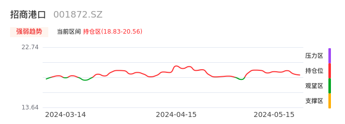 我们来看一下该股的九方特色指标强弱趋势的情况:招商港口自04月30日从观望区上穿到持仓区。股价近期在多头区域回调整理。后续重点关注多空分界点的争夺:18.83元。如未能有效站稳则可能重新回到空头行情。
