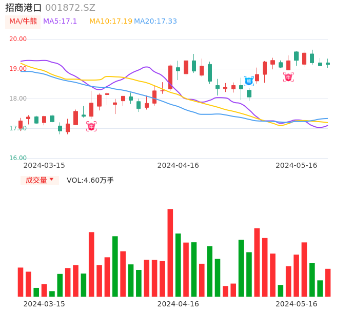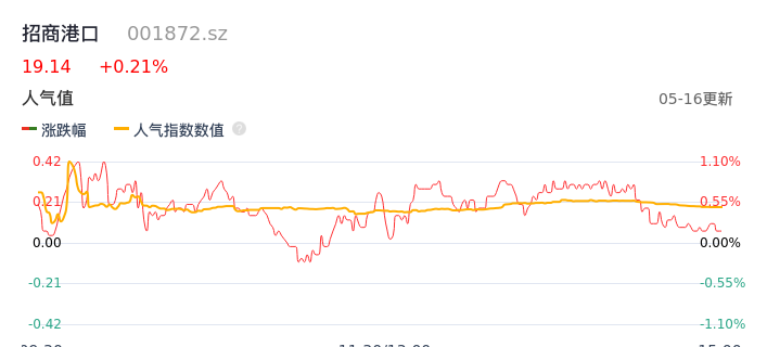 05月16日,招商港口收报19.14,股价涨幅0.21%,成交金额8845.07万元,换手率0.26%。