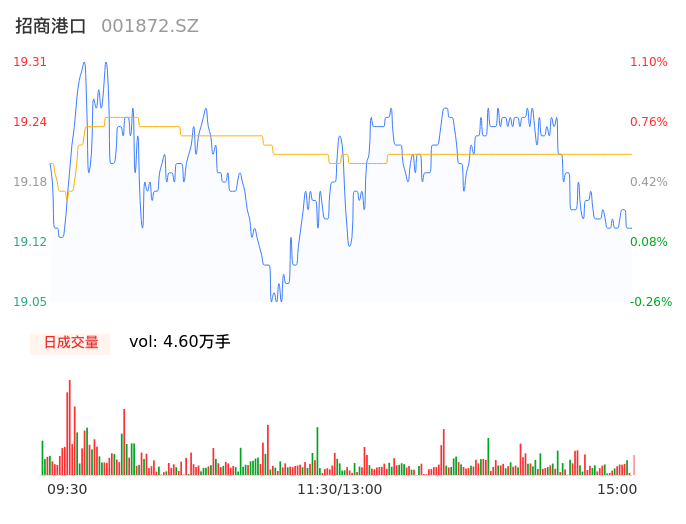 05月16日,招商港口收报19.14,股价涨幅0.21%,成交金额8845.07万元,换手率0.26%。
