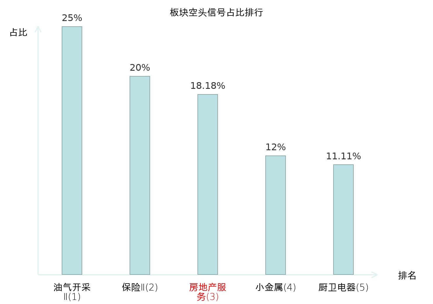 全市场所有行业板块中主力空头信号占比排名中,油气开采Ⅱ板块位居第一。装修建材板块名次提升最快,较昨日上升117位。