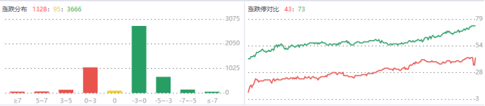 反观今日走势,各大指数就开始震荡走弱了,个股涨跌比1:4,盘面出现了一定的亏钱效应。
