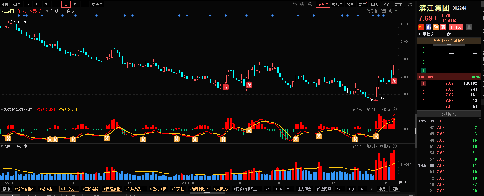 3)参考技术指标:滨江集团-升龙诀指标-出现龙信号