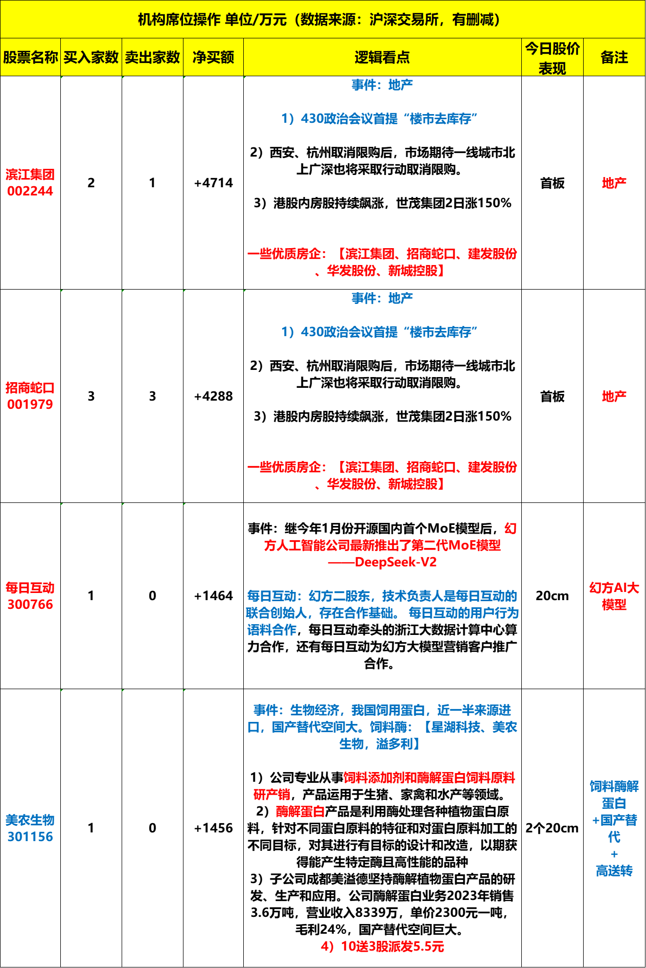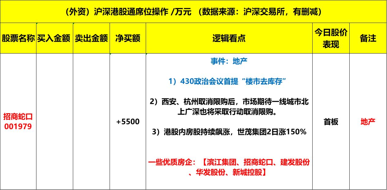 1)核心逻辑:事件:地产①430政治会议首提“楼市去库存”。②西安、杭州取消限购后,市场期待一线城市北上广深也将采取行动取消限购。③港股内房股持续飙涨,世茂集团2日涨150%。一些优质房企:【滨江集团、招商蛇口、建发股份、华发股份、新城控股】