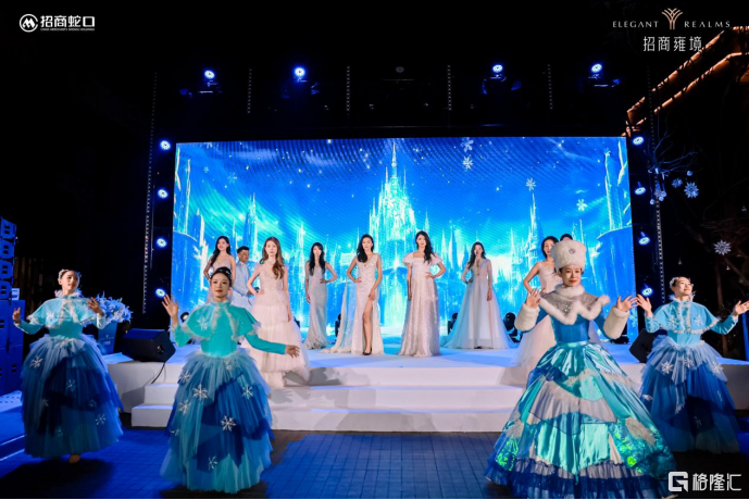 舞台上,冰雪芭蕾舞剧优雅上演,舞者足尖流转,以极致肢体语言诠释艺术与生活交融的浪漫想象。穹顶之上,流光漫舞,不仅营造出梦幻氛围,更将前海澎湃发展的时代情绪与招商雍境的产品温度紧密相连。