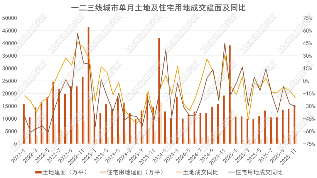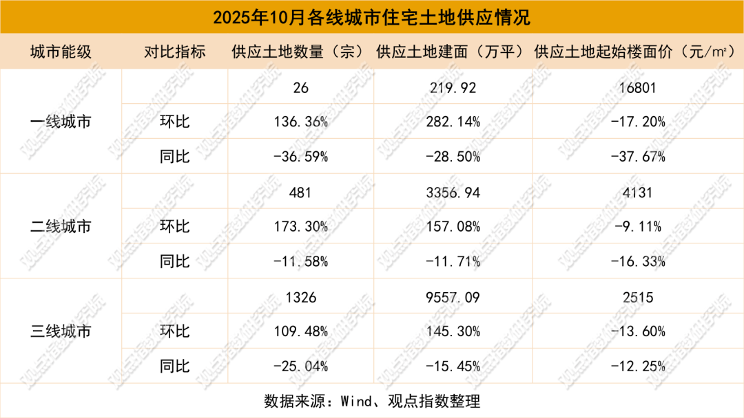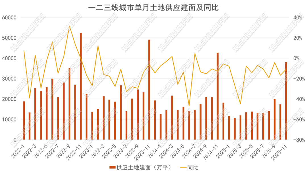 整体而言,11月土地市场供应虽有回暖,但同比表现仍显疲软,起始价格的持续下行反映出当前市场对土地价值的预期趋于谨慎,供应端基于企业的拿地成本压力而调整定价策略。市场恢复的力度与持续性仍有待后续供应及成交表现的进一步验证。
