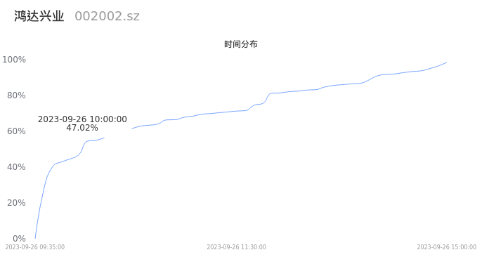 002002鸿达兴业2023年09月26日成交83.68万手,成交金额1.57亿元,相较昨日缩量61.63万手,换手率2.70%,成交清淡。