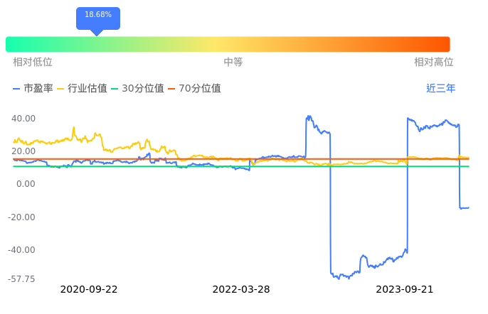 鸿达兴业当前市盈率PETTM为-14.26,在所属的化学原料中,市盈率PETTM排46名。前5名分别为双环科技PETTM5.63、山东海化PETTM7.51、君正集团PETTM9.62、苏盐井神PETTM9.92、中盐化工PETTM10.49。从PETTM估值走势数据来看,鸿达兴业当前市盈率PETTM为-14.26,超过近3年18.68%的历史数据。