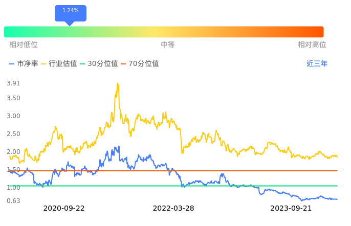 2023年09月21日,鸿达兴业上涨0%收于2.08,今日成交金额4623.14万元。下文将从市盈率PETTM、市净率PB、市现率3个角度去分析公司估值情况。