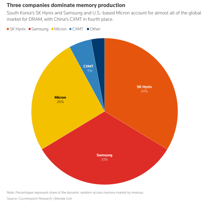 SK海力士10月表示,其2026年所有芯片已售罄,三星则表示已为明年生产的HBM芯片获得客户。两家公司都在扩大产能以满足AI需求,但用于传统芯片的新工厂要到2027年或2028年才能投产。