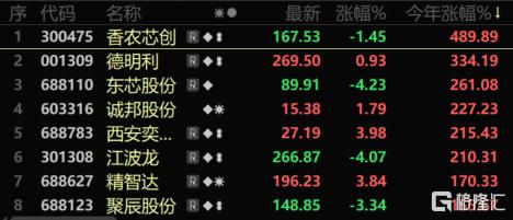 今日A股存储芯片板块继续走强,多股年内股价翻倍,其中香农芯创年内累涨近500%,德明利股价累涨超330%,东芯股份、江波龙累涨超200%,聚辰股份涨超150%。