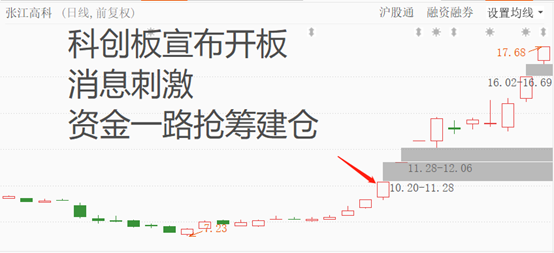 2018年11月5日,上海证券交易所将设立科创板并试点注册制,支持上海国际金融中心和科技创新中心建设。受益于这个消息刺激,创投概念个股纷纷大涨,其中以张江高科为案例来展示一下资金是如何在突发消息刺激下抢筹建仓的。。