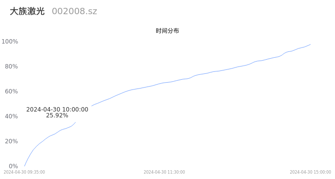 002008大族激光2024年04月30日成交40.48万手,成交金额8.54亿元,相较昨日缩量2.98万手,换手率4.13%,成交清淡。
