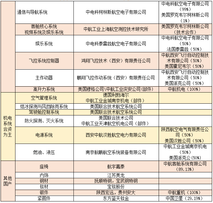 其次,合资企业共同研发的如航电系统、机电系统中的相关结构零部件,在合资企业的联合研制中不断优化,相关细分领域出现国产替代;