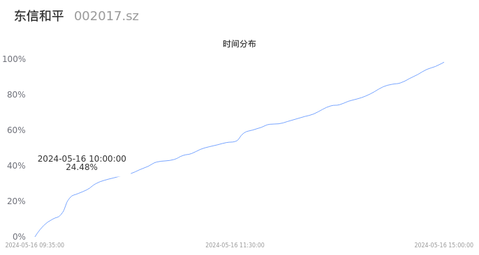 002017东信和平2024年05月16日成交4.80万手,成交金额4380.62万元,相较昨日缩量8621手,换手率0.83%,成交清淡。