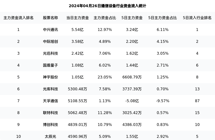 从主力资金流向来看,通信设备行业今日主力资金流入205.94亿元,在所有申万二级行业中排名:48/131。