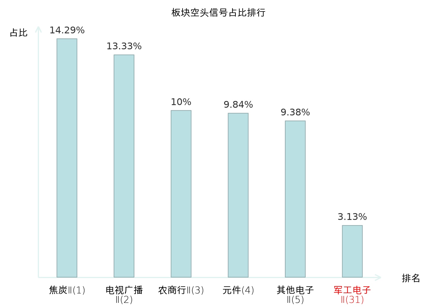 全市场所有行业板块中主力空头信号占比排名中,焦炭Ⅱ板块位居第一。农化制品板块名次提升最快,较昨日上升123位。