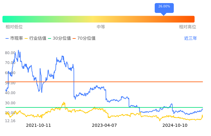 2024年10月10日,思源电气下跌0.44%收于73.91,今日成交金额9.41亿。下文将从市盈率PETTM、市净率PB、市现率3个角度去分析公司估值情况。