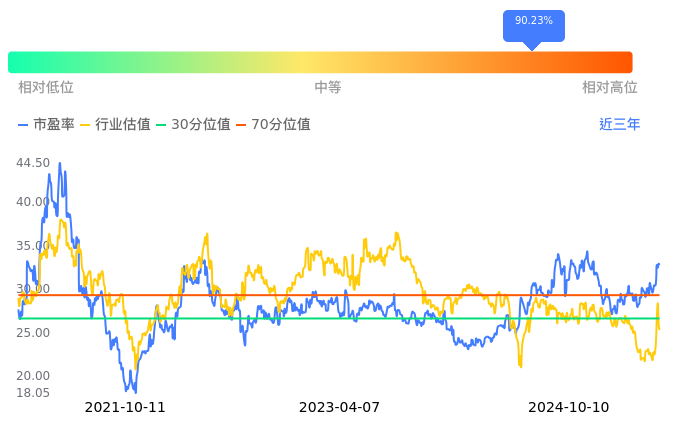 思源电气当前市盈率PETTM为32.78,在所属的电网设备中,市盈率PETTM排52名。前5名分别为特变电工PETTM11.23、正泰电器PETTM12.99、炬华科技PETTM13.22、金杯电工PETTM13.43、华通线缆PETTM14.25。从PETTM估值走势数据来看,思源电气当前市盈率PETTM为32.78,超过近3年90.23%的历史数据。