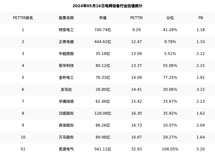 从估值角度看:思源电气最新市盈率PETTM为32.93,在行业内排名51/121,处于108.05分位。