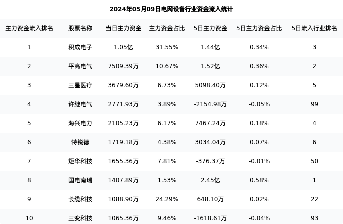 从主力资金流向来看,电网设备行业今日主力资金流入45.07亿元,在所有申万二级行业中排名:116/131。