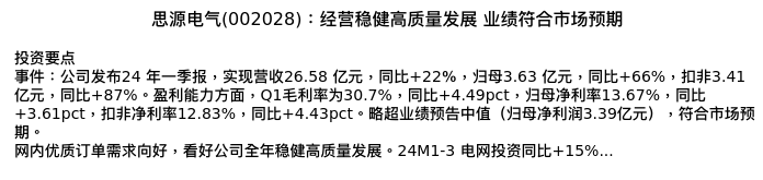 值得注意的是:2024年04月东吴证券的曾朵红/谢哲栋分析师,首次发布关于思源电气的研究报告,标题为:思源电气(002028):经营稳健高质量发展 业绩符合市场预期。