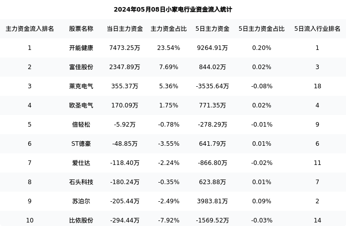 从主力资金流向来看,小家电行业今日主力资金流入7.51亿元,在所有申万二级行业中排名:8/131。