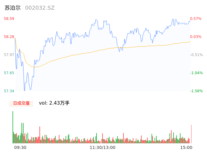 04月29日,苏泊尔收报58.55,股价涨幅0.50%,成交金额1.42亿元,换手率0.30%。