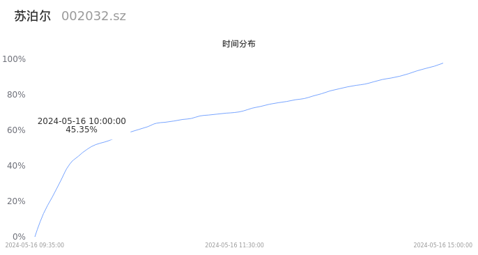 根据成交分布分析,该股票当天放量成交,成交清淡。时间上看,早盘前半小时成交量占据当天总成交量的45.35%;价格上看,成交呈现中间峰。成交分布分析主要研究股票成交的分布特性,不具有预测功能,请知悉。