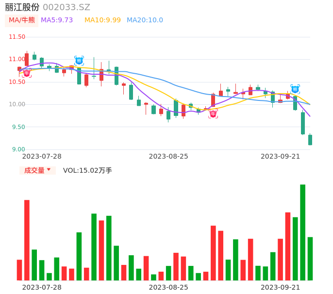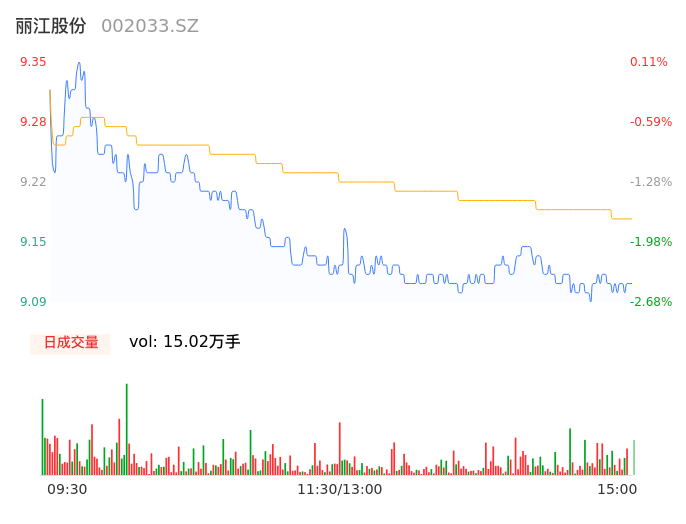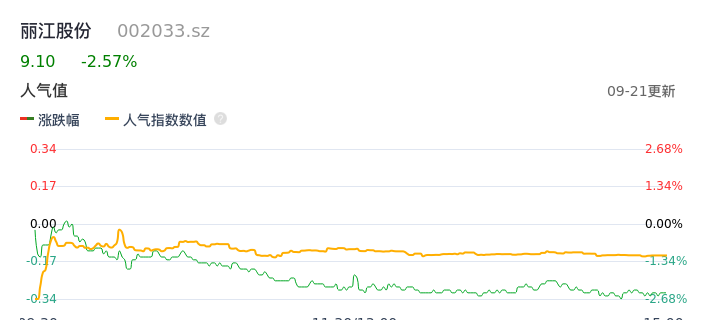 09月21日,丽江股份收报9.10,股价涨幅-2.57%,成交金额1.38亿元,换手率2.73%。
