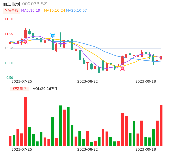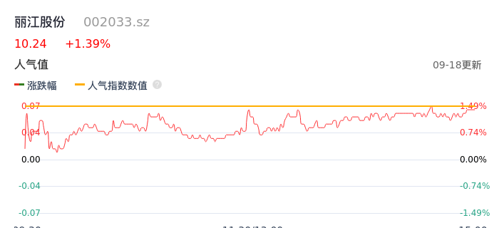 09月18日,丽江股份收报10.24,股价涨幅1.39%,成交金额2.06亿元,换手率3.67%。