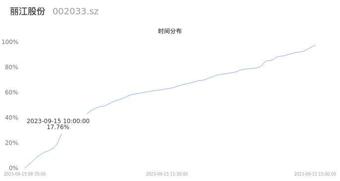 根据成交分布分析,该股票当天放量成交,成交清淡。时间上看,早盘前半小时成交量占据当天总成交量的17.76%;价格上看,成交呈现左偏峰。成交分布分析主要研究股票成交的分布特性,不具有预测功能,请知悉。