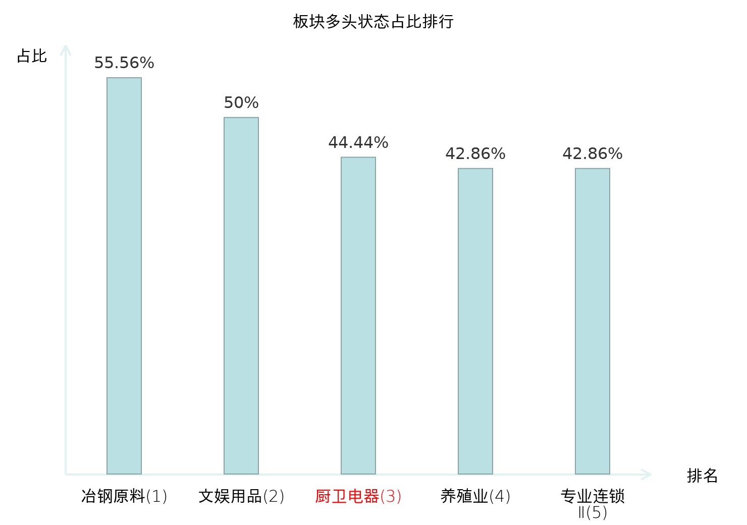 全市场所有行业板块中主力多头状态占比排名中,冶钢原料板块位居第一。能源金属板块名次提升最快,较昨日上升48位。