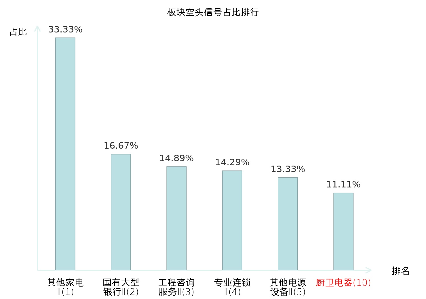 全市场所有行业板块中主力空头信号占比排名中,其他家电Ⅱ板块位居第一。光学光电子板块名次提升最快,较昨日上升117位。