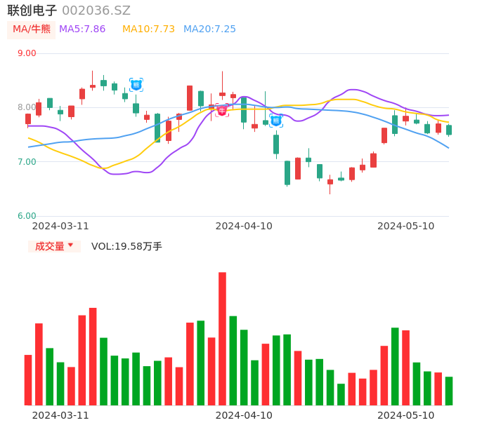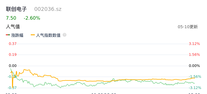 05月10日,联创电子收报7.50,股价涨幅-2.60%,成交金额1.47亿元,换手率1.86%。