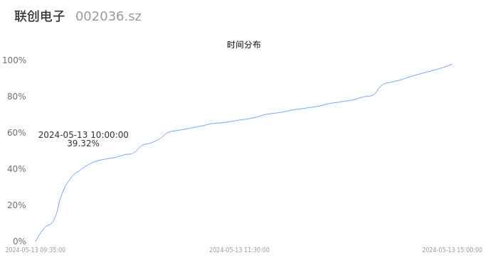 002036联创电子2024年05月13日成交29.54万手,成交金额2.14亿元,相较昨日放量9.97万手,换手率2.80%,成交清淡。