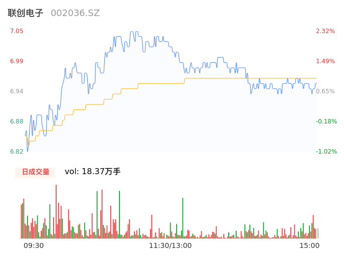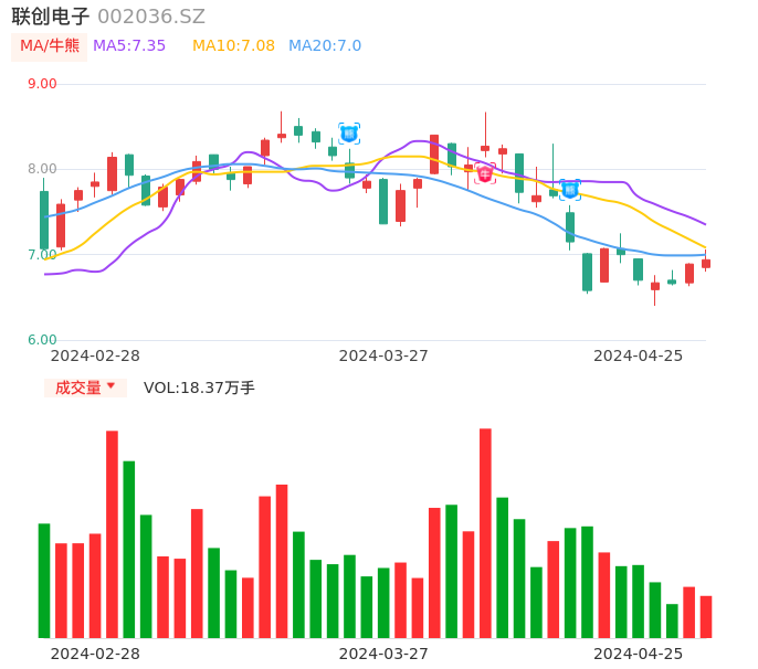 04月25日,联创电子收报6.94,股价涨幅0.73%,成交金额1.28亿元,换手率1.74%。