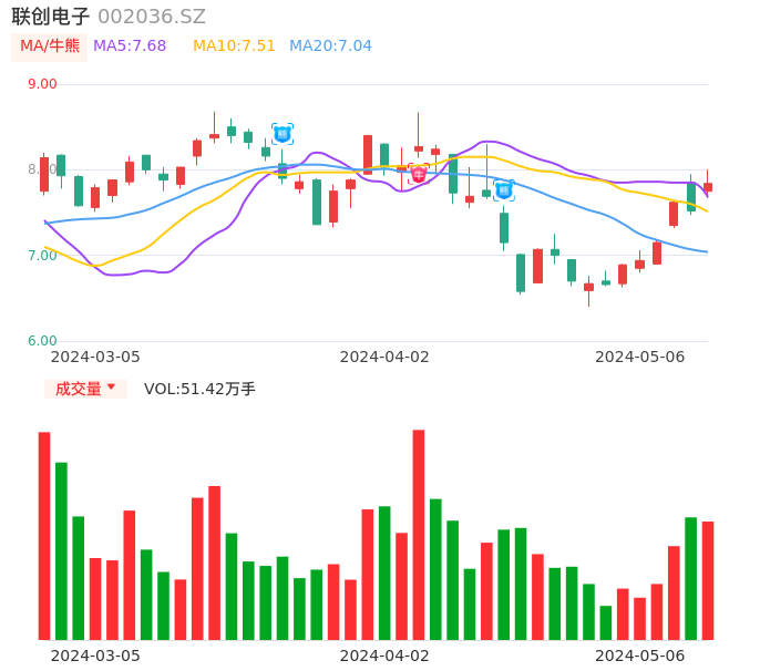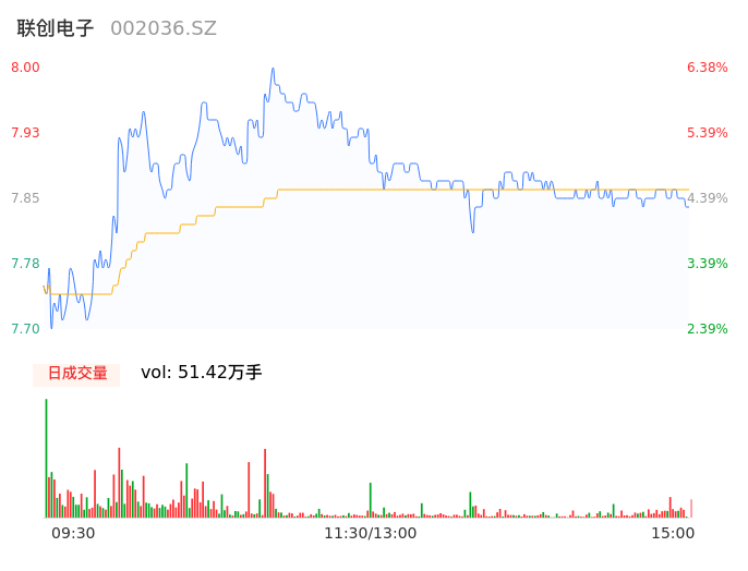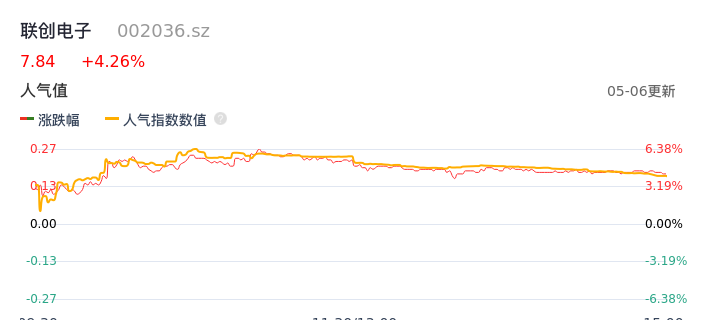 05月06日,联创电子收报7.84,股价涨幅4.26%,成交金额4.04亿元,换手率4.88%。