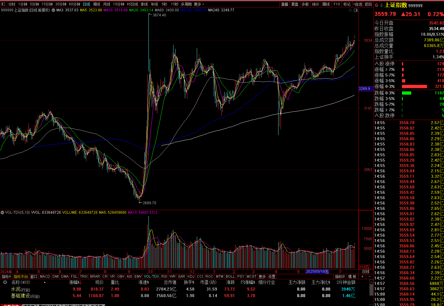 整体市场借助基建板块的力量暂时站上3556点,指数走势无疑是较强的,短期内成交量方面也无需担忧。接下来重点关注3556点能否站稳,若能站稳,指数有望继续震荡上行,挑战3615点附近;若无法站稳,市场可能会进入震荡盘整阶段,等待下一次走强的机会,同时仍需留意“银行”板块对指数的影响