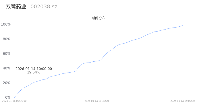 002038双鹭药业2026年01月14日成交36.75万手,成交金额2.89亿,相较昨日缩量1.10万手,换手率4.31%,成交清淡。
