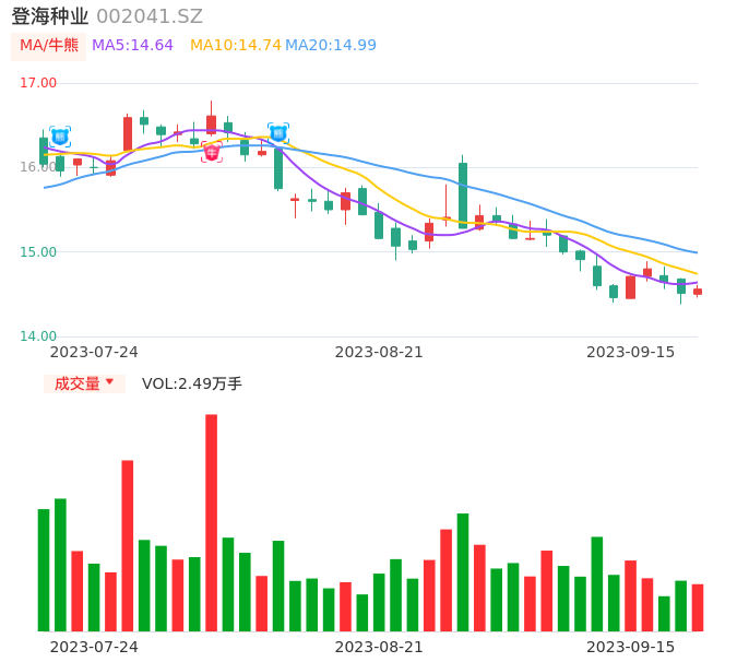 值得注意的是:2023年09月太平洋的程晓东分析师,首次发布关于登海种业的研究报告,标题为:登海种业(002041)中报点评:短期成本上升业绩承压 中长期发展前途可期。
